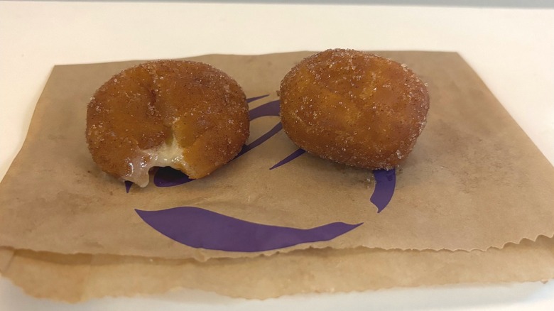 The morsels are simple in theory and (in my humble opinion) very well executed. What you'll get is a fried cinnamon dough ball stuffed with a thin, classic cream cheese frosting. Will I try making these at home the next time I need to satisfy a sweet tooth? Absolutely, and you won't be able to stop me from ordering some the next time I'm in a Taco Bell drive-thru. Don't try these if you don't need another sweet treat in your life — otherwise, eat with abandon.