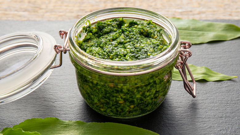 For a wild-inspired pesto, combine any wild greens that are edible in raw form with nuts like pine nuts or walnuts, garlic, Parmesan cheese, and olive oil. Blend everything into a smooth paste, and you've got a nutrient-rich, flavorful pesto with uses for pasta, roasted vegetables, or as a topping with grilled meats.
