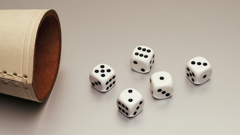 Sort of like Yahtzee meets poker, liar's dice (or chui niu) requires players to have on hand both a cup and five six-sided dice — enough for every member playing. Though liar's dice can function as a two-player game, more participants heightens the tension. Each player starts by rolling all five dice without revealing their count to any opponents, exercising caution to shield their results.