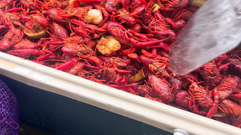 When purchasing seasoning packets separately from the crawfish itself, chef Gale points to a 4.5 pound bag of Crawfish, Shrimp, and Crab Boil Seasoning from Louisiana Fish Fry Products, stating that "it's perfect for a 30-pound sack of crawfish." The company doesn't divulge exactly what's tucked into those proprietary packets, using the generic overarching term "spices" in the ingredient list. However, it does state the important, traditional inclusions for a Louisiana-style seafood boil: Garlic, onion, paprika, and lemon. The same seasoning is also available in a potent, concentrated liquid form, which is useful for adapting as needed to smaller or larger gatherings.