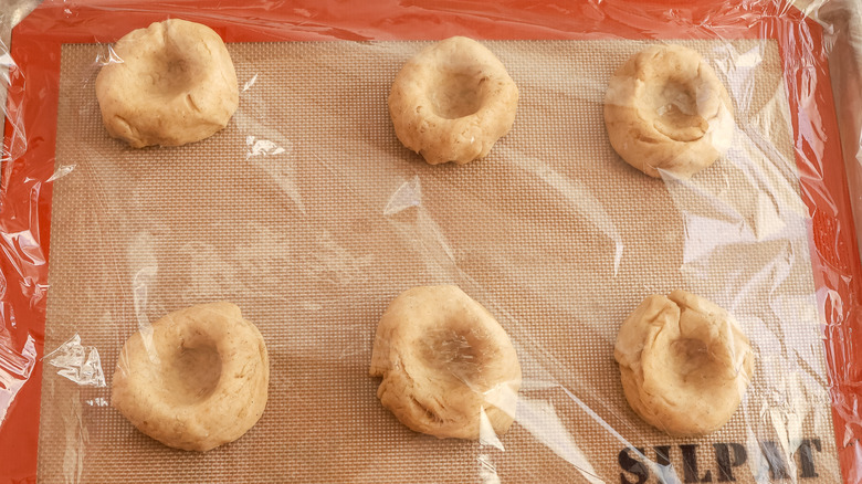 Using your finger or a spoon, create an indent in the center of each dough ball.
