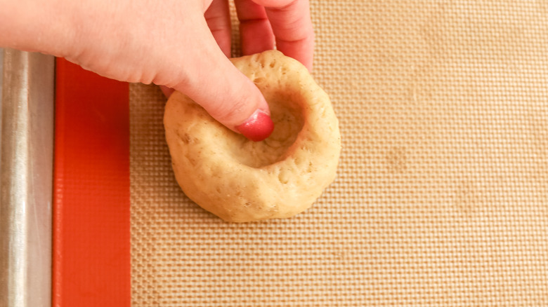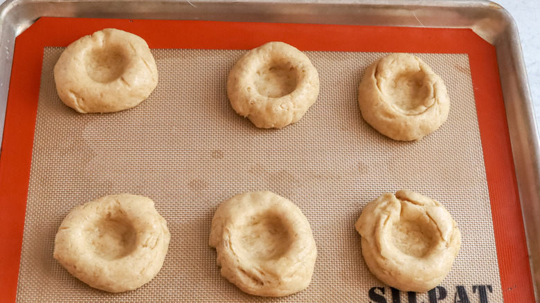 - Using your finger or a spoon, create an indent in the center of each dough ball.