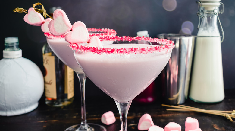That being said, you don't have to whip up a batch of macarons to give your Valentine's Day cocktail some pizzazz. For one, cocktail garnishes are designed to enhance the flavors and aromas in your drink, so you'll want to select something that's as much about function as it is about form. Think fruits and citrus peels — and if all else fails, add a piece of Valentine's Day candy on top.