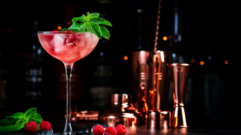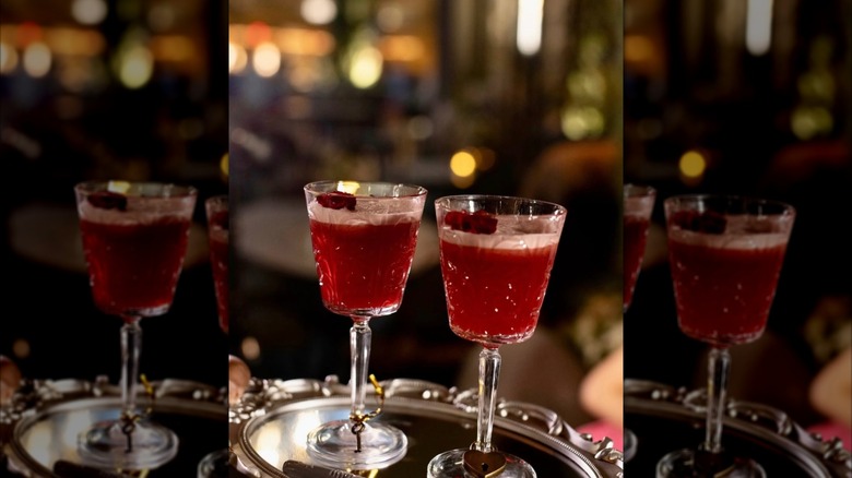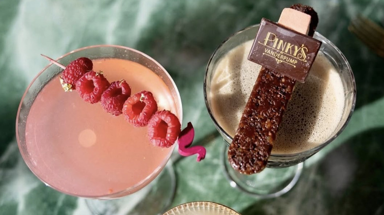 Vanderpump à Paris, for example, served a Lovelocked Cocktail in 2024. It came with a padlock attached to one of the glasses, while the key was located at the bottom of the other glass. As you sip, you can unlock the padlock and write your initials on the back. When the guests finish with their meal, the padlocks are added to the wall to signify an everlasting commitment. While it might seem a little gimmicky, not to mention cheesy, adding some sort of fun twist to your cocktail will elevate your entire experience. These ideas don't have to be super complicated (and involve a trip to the hardware store) either. For example, you can easily add an experiential component to your Valentine's Day cocktail by writing or decorating the glasses and using them for future Valentine's Day spent together.