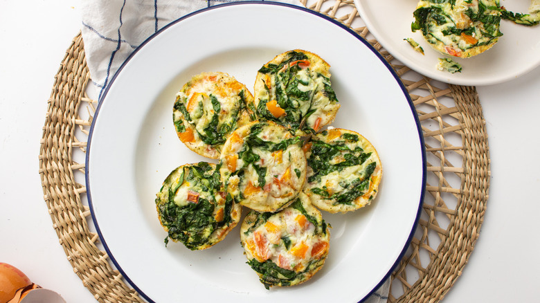 These simple little egg bites come together quite easily, consisting of just egg whites, spinach, tomato, bell pepper, and a little bit of salt and pepper. A simple muffin tray and your oven will do the heavy lifting, transforming your veggie-loaded egg mixture into tiny little egg cups that are perfect for serving to a large crowd, thanks to their grab-and-go nature.