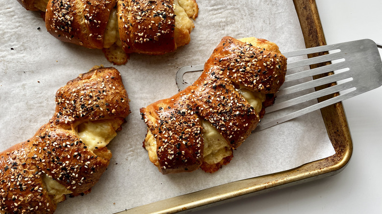 Of course, the little croissant cups almost aren't the star of the show here — the spiced apple filling is. The type of apple you use is up to personal preference, though it would be wise to use an apple type best suited for baking, like Granny Smith, Golden Delicious, or Pink Lady. Once baked, the final croissant has that perfect balance between flaky crust and warm, gooey apple inside, and the handheld nature of the croissants makes them perfect for sharing at a potluck.