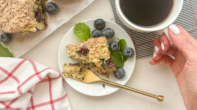 There's a good chance that someone at your breakfast potluck will be vegan, so it's always a good idea to try to accommodate various dietary preferences whenever possible. It's pretty easy to do so with recipes that are so easy to make and taste so good, like this vegan blueberry coffee cake recipe. The beauty of this recipe is that it doesn't call for any rare or particularly specialty items to transform a classic coffee cake into a vegan version, just simple swaps to dairy-free butter, milk, and yogurt.