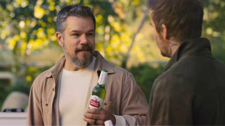 Stella Artois recently teased the start of its new campaign and Super Bowl ad with a short commercial featuring Beckham and his parents, where they share that Beckham has a forgotten twin living in America who they call "Other David." The full Super Bowl LIX ad just dropped, where audiences were surprised to see Academy Award-winner Damon enjoying suburban life (and showing off some impressive football skills), going by the name "Dave Beckham." Beckham is relieved to find his twin passing out bottles of Stella Artois, saying, "You drink Stella?" To which Damon replies, "I have taste, David," as the two clink their drinks.