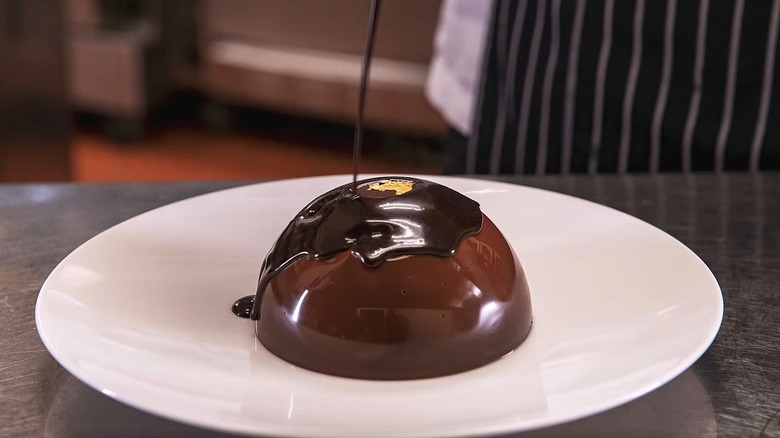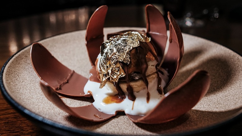 If you love a classic banana cream pie, there's a pretty good chance you have a recipe for the original creamy, banana-y version. That, however, is not at all what you'll get if you order the banana cream pie at Cut in Las Vegas. This incredible dessert is served in a sphere that's topped with a caramel sauce, which breaks open that chocolate shell to reveal some of the more traditional pie ingredients. There's banana custard and caramelized bananas, but there's also gold leaf, too.