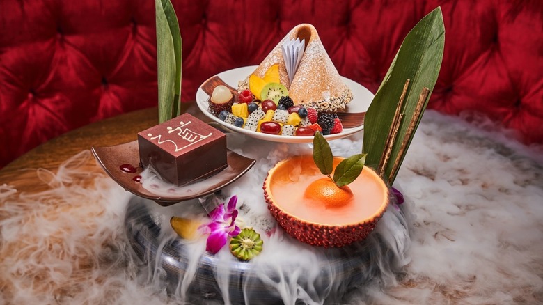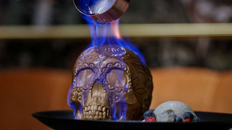 This particular dessert isn't just for eating, it's for experiencing during a table-side show that includes setting the chocolate skull on fire and watching it melt. The gold skull occasionally gets a holiday makeover (it turns red for Valentine's Day, for example), but the idea remains the same. A chocolate lava cake is nestled inside the chocolate skull, which is covered with a boozy sauce and set aflame in a lovely, decadent, and dare we say poignant display that turns the beautiful yet bleak skull into a dessert that is a work of art.