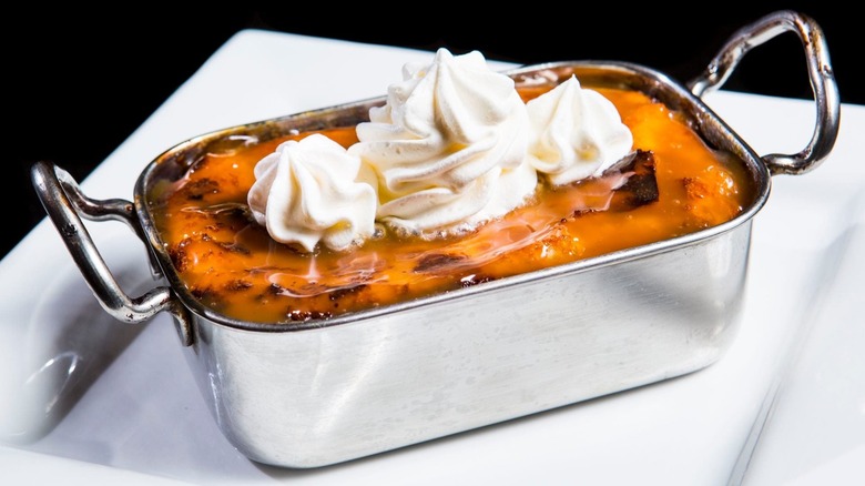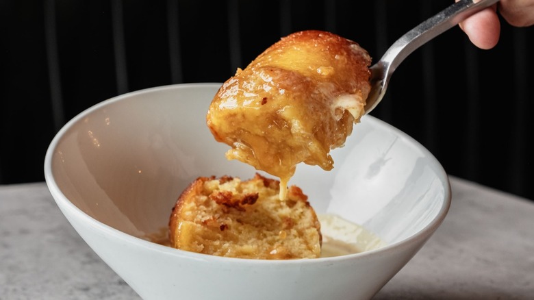 The secret to a truly stellar bread pudding is a bread that can stand up to the liquid without becoming mushy — it's why stale sourdough is the perfect option for bread pudding. It turns out that glazed donuts are also ideal, especially when paired with a rich vanilla custard and a caramel sauce made with three different types of rum. Reviews for the bread pudding largely agree that it's one of the many must-try dishes in the city, delivering just the right amount of sweetness.