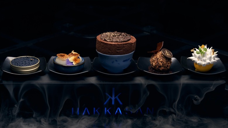We're here to talk about desserts, though, and if you can't decide what to choose, go with the Hakka Platter. That's a selection of five miniature desserts, and what's available varies throughout the week. Take a look at the full-sized versions, though, and you'll see that no matter what's on the menu, you're going to be happy. There's the Thai Tea Pot and Hazelnut Milk Chocolate Parfait, along with pavlova, ice cream, and even a sweet caviar. The platter is perfect for sharing — or perfect for anyone who can't decide on just one dessert — and when you're in Vegas, why should you choose just one?