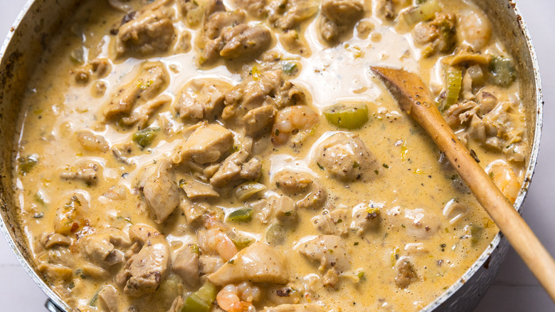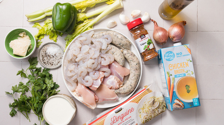 Gather the ingredients for this creamy Cajun pastalaya