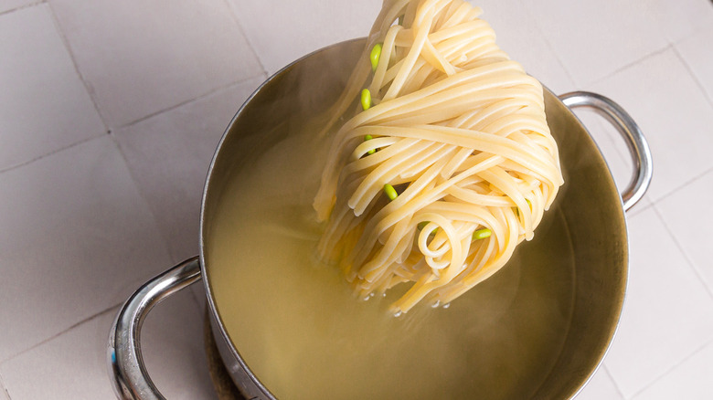 - Add the linguine and cook until al dente.