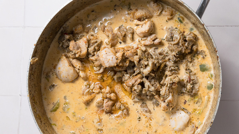 Add the chicken and sausage back to the skillet with the cream sauce.
