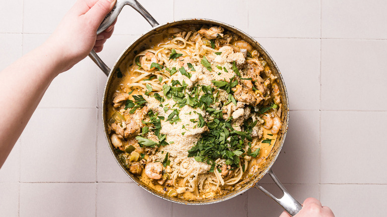 Customizing this Cajun pastalaya is easy, but you do want to try and maintain some of the original flavors of the dish. One simple way to change things up is to substitute or add different proteins. If you're not a fan of shrimp, you can omit it entirely or replace it with more chicken or sausage.