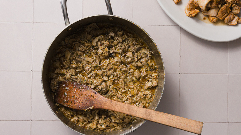 Step 13: Add the chicken and sausage to the pan