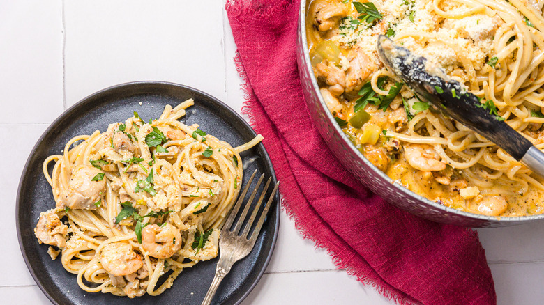 Pastalaya is just what it sounds like - a creamy pasta dish with all the regular fixings of jambalaya. It's a fun and creative way to shake up a Cajun classic.