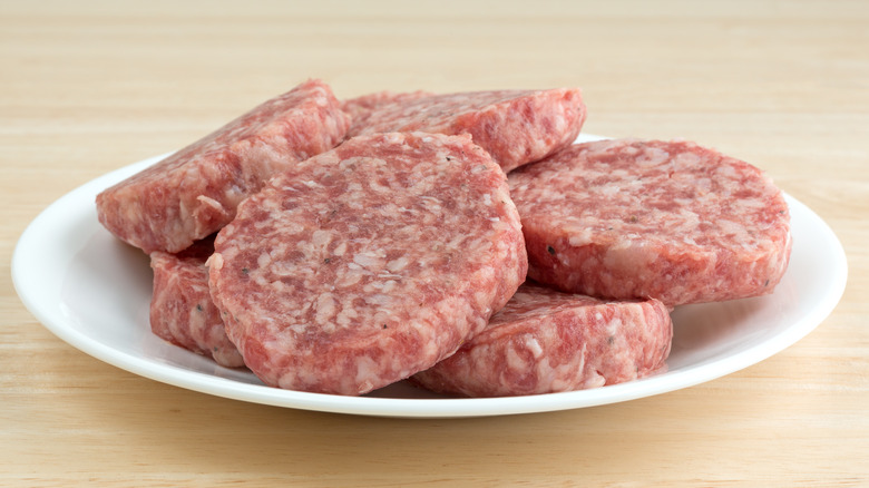 It's not complicated to add brown sugar to homemade breakfast sausage. Start with about 2 pounds of ground pork, which will result in around six servings. Every recipe is different, but a tablespoon of brown sugar for every 2 pounds of ground meat will offer a mild sweetness. If you want more sweetness, increase the brown sugar or combine it with a pour of maple syrup. Either way, you'll want some other spices to balance the flavor. For heat, consider cayenne pepper, red chili flakes, or a dash of smoked paprika. Garlic powder, onion powder, fennel seeds, nutmeg, and marjoram are also go-to spices for breakfast sausages depending on the desired flavor profile. Fresh herbs like sage or dried herbs like Italian seasoning are a good way to add more layers of flavor, as well.