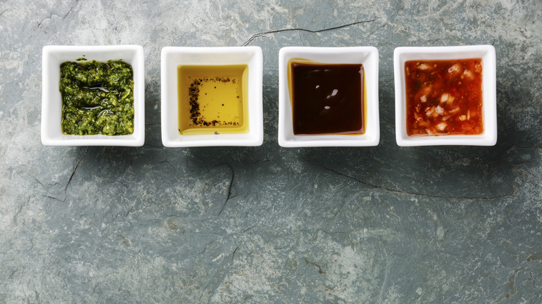 In addition to tools, there are accessories that shouldn't be missed. Chef Poses recommends ramekins for sauces, as well as crushed ice — a layer of ice, a sprinkle of salt, and another layer of ice on top will keep the ice from melting too fast — to keep everything cold. For any sliced fish, he recommends having seaweed or shiso leaves underneath to keep the fish from getting burnt by the ice. Additionally, scallop shells can be used to show off delicate pieces of sliced fish.
