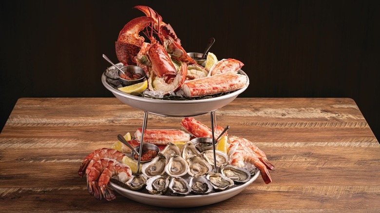 On the West Coast, there are Alaskan king crab legs, squid from California, and tuna from the Pacific Ocean. In the Gulf of Mexico, the phrase "everything is bigger in Texas," or in this case, around Texas, rings true. There, large Gulf shrimp (a delightful oxymoron) are in heavy rotation, as are Gulf oysters known for their large size and meaty texture. On the East Coast, blue crabs and soft shell crabs are a can't-miss, as are lobsters, blue mussels, and farmed oysters, which are available year-round. All this is to say, there's no shortage of seafood to choose from, and each coast's briny delicacies bring something different to the plate. At Peter Luger in Las Vegas, you'll be sure to find a mixture of East and West Coast seafood on Chef Frank Zelaya's seafood towers, highlighting the different regional flavor profiles each one brings.