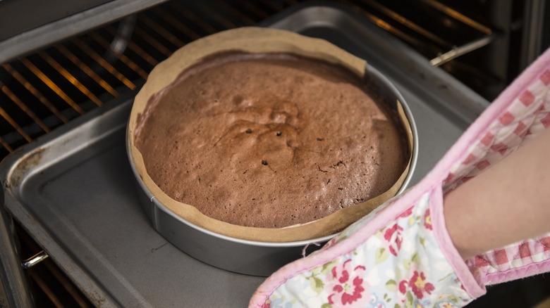 Another potential cause of uneven baking is using a suboptimal baking pan. Aluminum is a trusted pan material because it conducts heat well. In comparison, glass takes longer to heat up, so it may not be able to effectively cook the bottom of your cake at the same rate as the top. If you're baking with a glass pan, try switching to aluminum and seeing if your bake is more consistent.