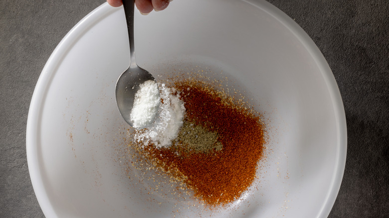 Taco seasoning is one spice that you may only whip out when you want to try your hand at Chili's fajitas from the comfort of your own home or when your children are begging for tacos for dinner. But this seasoning blend has a lot of utility in the kitchen for more than just Tex-Mex. You can also use it as an all-in-one addition to homemade potato chips. Make your own taco seasoning at home or rely on a container you buy at the grocery store. There are usually some similar additions across brands — including cumin, chili powder, oregano, and paprika — though the exact amount of heat can vary.
