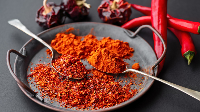 Some like it hot, and for them, there is Cajun and Creole seasoning. Cajun seasoning is a fiery blend of white pepper, cayenne, paprika, onion and garlic powder, and black pepper, though you will see variations of it that utilize other types of spices as well. Creole seasoning, on the other hand, tends to lean more on the herbs. There's thyme, oregano, bay leaf, and basil, as well as the usual suspects like garlic powder, onion powder, paprika, and cayenne.