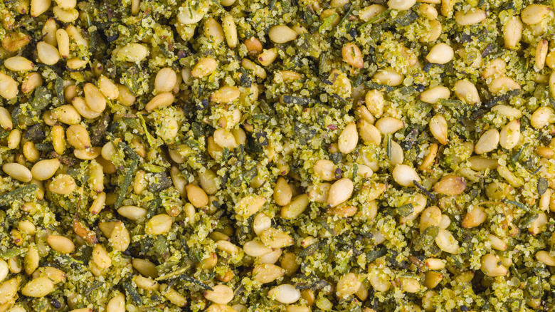 Move over everything bagel seasoning; there's a new (and, if we're being honest, tastier) sheriff in town. Za'atar seasoning is a staple of Middle Eastern cuisine. While it can be used for meats and fish, it also makes an excellent pairing for salty, starchy bases like roasted or fried potatoes. The typical components of this blend include sumac (which imparts a tart, citrusy flavor), oregano, marjoram, thyme, salt, and some sesame seeds for a nutty and flavorful touch. It's wildly complex yet familiar all at the same time.