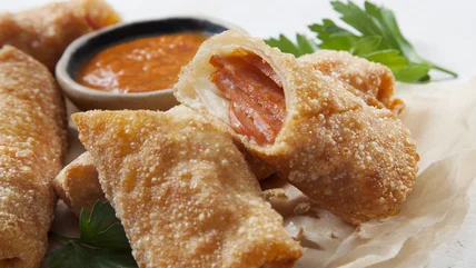 All you need is the wrappers, an egg, some flavorful pizza sauce, mozzarella cheese, and any other fillings you desire. The rolls can be cooked in the oven, air fryer, or deep fried for that extra crunch. If you're using the oven, preheat it to about 375 degrees Fahrenheit so it's ready to go when the rolls are assembled.