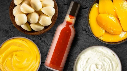 We have quite a few suggestions for creamy ingredients to mix with hot sauce, but using ranch dressing can give it a depth of flavor thanks to ingredients like lemon juice, dry mustard powder, oregano, garlic, and dill. It's kind of an all-in-one ingredient to quickly change up the entire profile of hot sauce. It can be particularly effective to enhance a hot sauce you have on hand that you don't particularly love because its creamy, tangy, and herby ingredients can give it a lot of improvement.