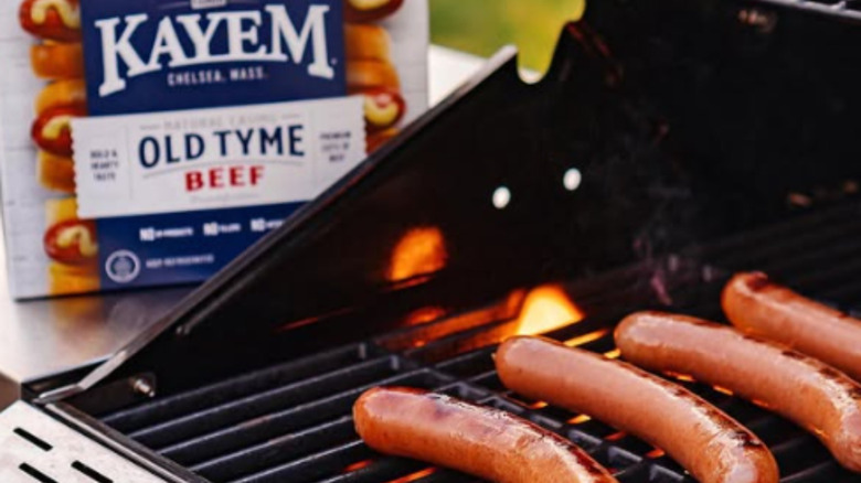 When summer time arrives with blue skies and warm temperatures, it seems natural to throw hot dogs on the grill. With a litany of hot dog hacks and seemingly endless topping combinations, the pairing of a warm bun and a juicy frank is a crowd-pleaser at any time — especially with the right dog. To find the very best, we tried and ranked 13 popular grocery store hot dog brands, and our number one pick is Kayem Old Tyme Beef.