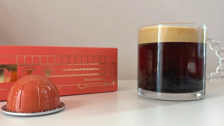 Nespresso's Barista Creations lineup was designed for coffee lovers and aspiring baristas who want to use their Nespresso machines to bring new creations to life. The wide range of pods is engineered to be paired with milk and curated for different palates and taste preferences. There are sweet, ultra-light roasts with notes of caramel and biscuit, intense Melbourne-inspired blends meant for cappuccinos, and dark, smoky, capsules to create Spanish-style cortados. It's a lot to choose from, but there is one pod that stands out among the vast collection: Peanut & Roasted Sesame flavor.
