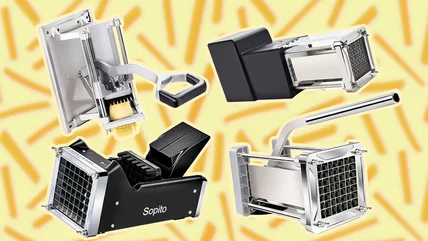 If you're tired of trying to figure out how to cut potatoes when making fries, you might want to take a look at this professional french fry cutter from Sopito. It features a large cutter box, which is capable of accommodating whole potatoes that are up to 5.58 inches by 3.51 inches. After inserting your potato into the box, simply use the ergonomic handle to press it through the slicing blade. Within a few seconds, you'll have up to 49, ½-inch thick fries ready to toss in the deep fryer, oven, or air fryer. Sopito also offers other models with slicing blades that can make ¼ or ⅜-inch fries. Beyond its uses for potatoes, you can also use this model to slice a variety of other vegetables, including carrots, eggplants, and cucumbers.