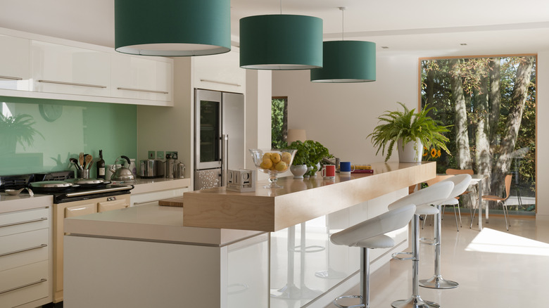 For those looking to go further with their kitchen, biophilic design can also include things like larger windows, using reclaimed wood for cabinets, doors, and tables, or even adding a living green wall. The idea behind this trend isn't just to make your kitchen look more inviting, but to make it feel more inviting, too. Allowing nature inside has been found to reduce stress, improve air quality, and just generally make you feel better about the space you're surrounded by.
