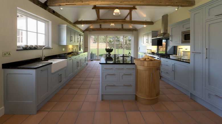 Terracotta tiles are also surprisingly accessible: Handmade, washed terracotta-colored Talavera tiles are available on Amazon, and there's no need to cover your whole floor. These vivid tiles would also make a great entryway, would look great replacing high-traffic areas in front of the sink and stove, or beneath the seating at a kitchen island.