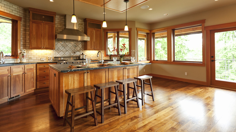 The growing popularity of natural woods also ties into the idea of biophilic design and bringing a little bit of the natural world into the kitchen. That means 2025 is going to be bringing things like reclaimed wood doors, shelving, and tables to the forefront, so if you've ever considered refinishing your painted cabinets and restoring them to their natural glory, this could be the year to do it. One of the particularly brilliant things about this growing trend isn't just the chance to add sustainable materials to your kitchen, but using reclaimed wood is a great way to tap into elements of nostalgia and a fun, eclectic vibe as well. But what if your recently revealed cabinets aren't the same kind of wood as that reclaimed table you've had your eye on?