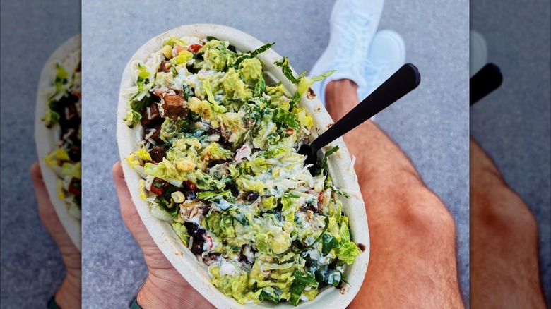 For Mexican-inspired cuisine, you can head to Chipotle for a filling gluten-free meal. At Chipotle, the most popular thing to get is the burrito bowl — which is basically a burrito deconstructed into a bowl, without the flour tortilla. A staff member will fill the bowl with any ingredients that you ask to be placed inside the bowl, making it completely customizable. On Chipotle's website, there is an extremely handy section that allows you to see every single item that they offer, and what allergens are in each item. That way, you can plan ahead with what you want to add into your bowl.