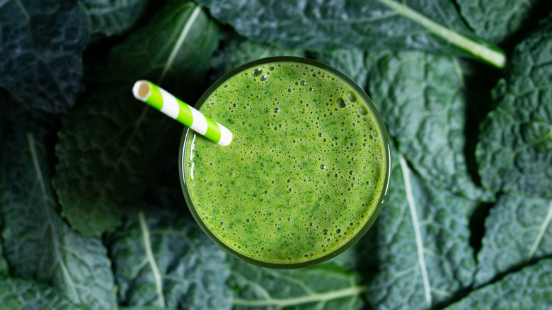 Kale is another classic leafy green that you'll often find in smoothies. However, I find that kale smoothies tend to be a bit chunky, or are overly blended and too liquidy. This is because kale doesn't break down as easily as, let's say, spinach. You can defeat this by blending the kale with your liquid first until it's silky smooth, and only then do you add your frozen ingredients. This will prevent over-blending or flecks of green chunks that stick to your teeth.