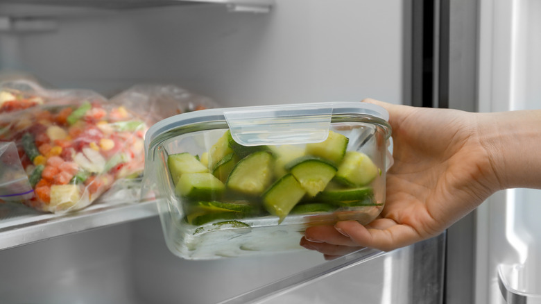 Some folks add ice and water to their smoothies. I am adamantly against this. Water and ice are a missed opportunity for flavor and texture. Pre-frozen fruits and vegetables will give your smoothie that unforgettable frosty chill, and water-dense fruits and vegetables will help keep that blender engine moving. Cucumber is one of the vegetables that you can substitute for liquid in your smoothies. The second it hits the blender, boom, it's as good as water. Well, actually better because it's filled with nutrients and flavor.
