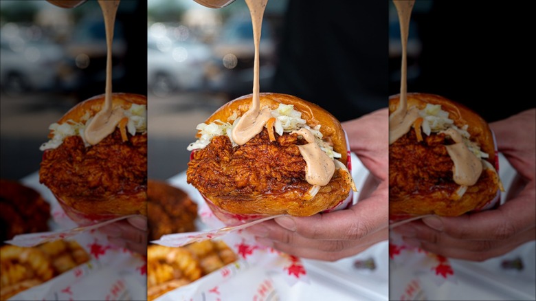Brothers Jordan and Sam Graf found their inspiration to open a Colorado-based hot chicken restaurant in 2016 from a visit to Nashville, and its Music City Hot Chicken name is the duo's homage to the Tennessean city. "Before we opened, we did some research, and outside of having a Nashville-style sandwich on the menu, we didn't come across any specialty restaurants," Sam told The Denver Post. So, the fact that these two were filling a demand was hardly in question — and their business was luckily given a boost from a rather unlikely place. Sam explained that around this time, "KFC did all the educational leg work for us with the commercials, and marketing, which helped grow familiarity with what hot chicken was."