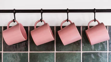 You may already have a favorite mug or two that you want to show off. Otherwise, if you're still feeling thrifty, head to your nearest second-hand shop and find a few that you would love to hang on the hook. They don't necessarily have to match, but pay attention to the shape of your coffee mugs, as it can make or break the coffee experience, and also consider how color influences our senses (this is why drinking coffee from a green mug can make for a better morning cup). Then, step back to admire your homemade coffee nook and a job well done. Here are 14 coffee essentials that baristas swear by if you want to keep taking your home coffee bar to the next level.