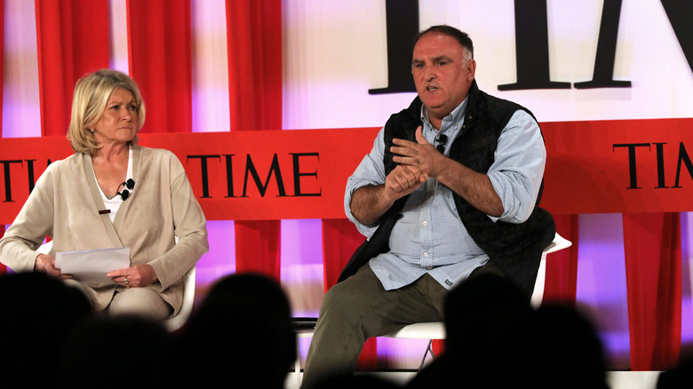 In a culinary competition unlike any other, Martha Stewart and José Andrés get to impart their industry wisdom on the contestants — which is fitting, since the two have had their own set of personal and professional challenges. As explored in the 2024 Netflix documentary, "Martha," Stewart's experience with both the national press and the United States government in the early 2000s made her a target of sexist rhetoric and defamatory accusations. But, the time she spent inside the Alderson Federal Prison after being found guilty of conspiracy, obstruction, and lying to a federal investigator was also formative to her personal and professional life. In the time since, Stewart has become both a feminist role model and further solidified herself as an iconic food personality.