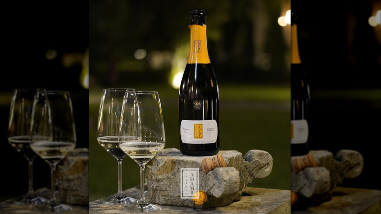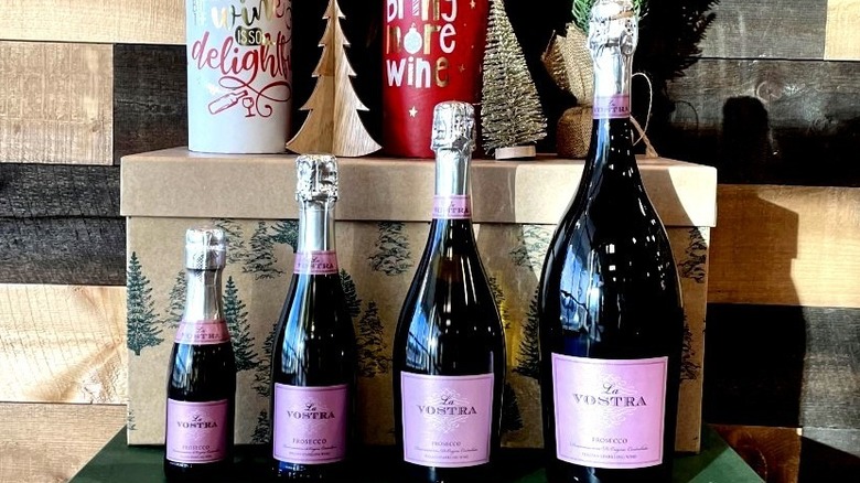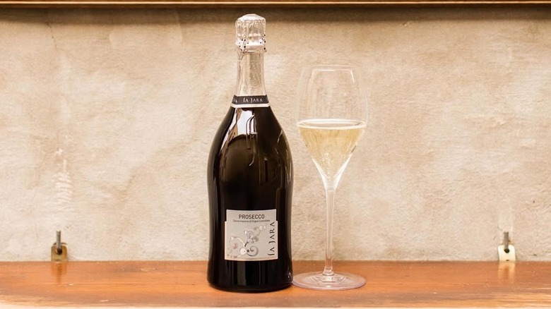La Marca offers notes of citrus, stone fruit, apple, and pear, as well as hints of floral aromas. This wine shows plenty of freshness in the glass, with some sweetness to round out the palate. With 17 grams per liter of residual sugar, it's on the sweeter end of the spectrum and on the cusp of extra dry and dry classifications. If you're using homemade peach puree with slightly tart fruit, this is a great prosecco to pair with it to attain balance. Available in four wine bottle sizes — split, half, standard, and magnum — it's an excellent choice for small and large gatherings.