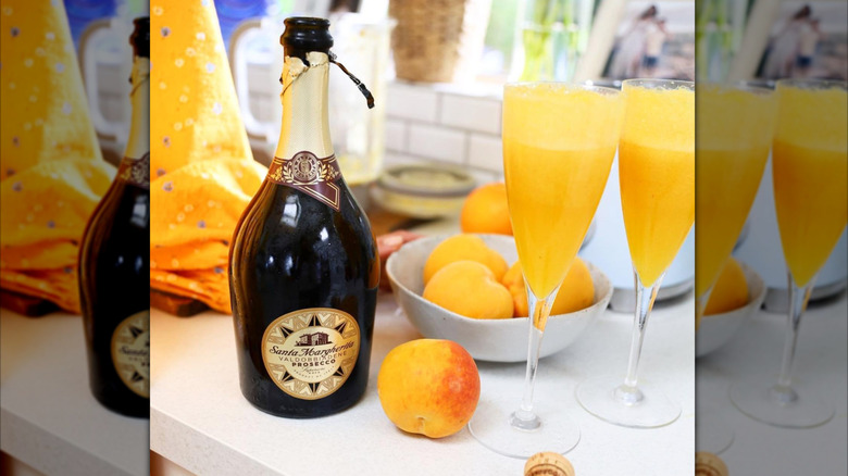 Plenty of popular cocktails rely on sparkling wine to infuse bubbles and lightness into the glass. From brunch-time mimosas to the French 75 or Aperol spritz, a bubbly drink always feels a touch more celebratory. While some drinks add sparkling wine as a finishing touch, others place it front and center, only enhancing it with a mixer. That's the case with a Bellini, the iconic peach and prosecco duo immortalized at Harry's Bar in Venice in the late 1940s. The drink's name is inspired by a painting by an Italian Renaissance artist Giovanni Bellini, which boasts warm sunset hues that match this peachy concoction.