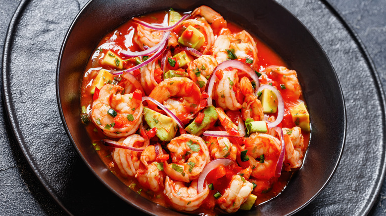 Even when shrimp cocktail is prepared with the attention it deserves — meaning shrimp that are poached in a flavorful broth and served with a cocktail sauce that's freshly made with just a bit of zing from horseradish — the familiar starter can seem a bit timeworn and basic. But shrimp lovers can polish up that old standard with some Mexican-style inspiration that's infinitely customizable and sure to be a hit with friends and family.