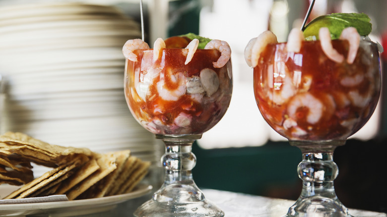 This version is always served with saltine crackers or fried, flat corn tostadas for scooping up the delicious cocktail, which is the perfect way to enjoy each savory bite. When the shrimp runs out, there's no shame in going after every last bit of the addictive soupy tomato sauce in the serving bowl — it's like the ultimate seafood Bloody Maria mix, just waiting for that splash of tequila.