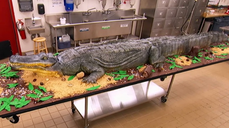 Another cake for Adventure Aquarium in New Jersey was commissioned for the going-away party for one of its alligators, which was about to be transported to a sister aquarium. Given all the other life-sized cakes Carlo's Bakery has under its belt, it only made sense to create a life-sized replica of the 14-foot long alligator. A cobblestone mat was used to create the remarkably realistic scaling design on the alligator's skin. The bakery team paid special attention to texture throughout the cake's creation; personally, we think the team did a standout job making it look pretty deadly. To top it all off, a hinge opens the alligator's mouth in a terrifyingly lifelike maneuver.