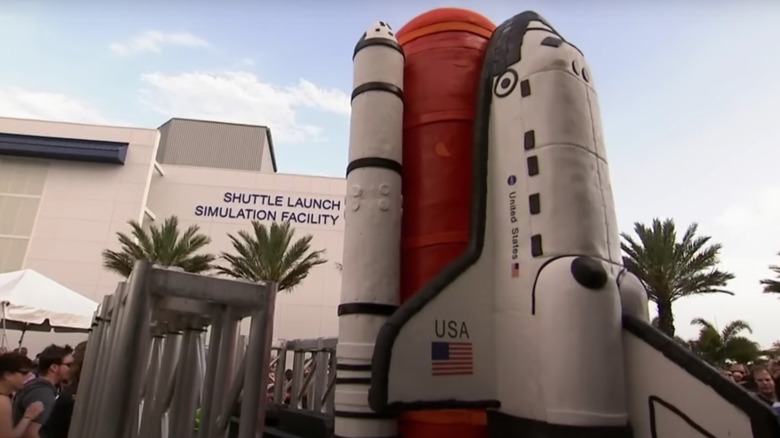 When NASA asked the team at Carlo's Bakery to make a cake for a 30th anniversary celebration, everyone knew it would be a huge undertaking. Huge doesn't begin to describe this cake. Rice Krispies treats were molded to form the rocket body, each booster rocket was made up of a stack of 30 cakes, and the external fuel tank was another massive stack of 13-inch cake rounds. But the ginormous cake alone wasn't enough to satisfy Buddy Valastro, who was determined to find a way for the cake to take off. Despite a couple of minor setbacks (like a chunk of the cake falling off during delivery), the team pulled off this masterpiece, which achieved liftoff with some creative pyrotechnic work.