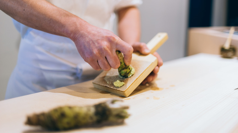 If you've ever had sushi at a restaurant, you've had wasabi. You may have even grabbed a tube or squeeze bottle from the store too. However, while many people may think they know what wasabi is, they really only know a version of it. Traditional wasabi is made fresh from the Japanese wasabi plant root or rhizome, ground or grated into a paste — but, the truth is, there are a lot of fakes out there. If anyone knows anything about distinguishing between real wasabi and the fake stuff, it's Kazuo Yoshida, the co-executive chef and leader of the sushi program at Umi Atlanta.